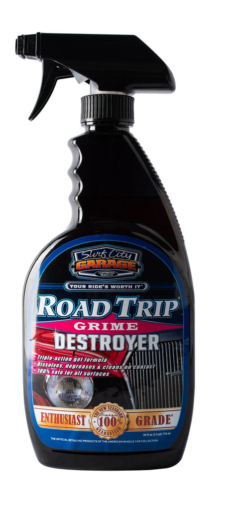 Bugs, tree sap, tar, road grime and birds don’t care about your paint. They’ll destroy it right down to the bare metal. But you care. That’s why we created Road Trip Grime Destroyer. It’s a gel that stays where you put it to dissolve, remove and clean any exterior metal surface of your car. Yes, even clear coats! No more using watery bug & tar removers that drip off before they can do any good. This powerful gel is the only bug and tar remover that can handle “Love Bugs,” the most paint damaging insects on earth. So love your car, not the bugs, and safely wipe it all away with Road Trip.