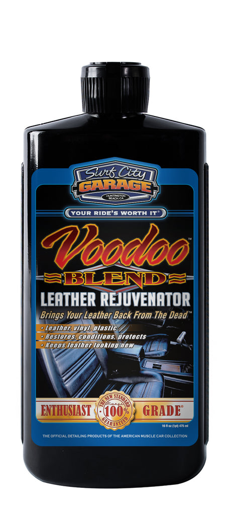 There comes a day in every car owner’s life when they look at their leather seats and dream about the good old days... smooth surfaces, that new leather smell; seats that were once filled with such conditioned, supple life. Voodoo Blend Leather Rejuvenator starts where conditioners end. It will not only clean and condition your leather interior, it will bring it back from the dead, and keep it there too. The finest beeswax combined with oil-replenishing lanolin rejuvenates your dry, cracked seats - even adding long-lasting waterproofing protection. “Can I use it on my vinyl?” you ask. Yeah, Voodoo Blend has your back... just like those newly rejuvenated seats you’ve missed so much.